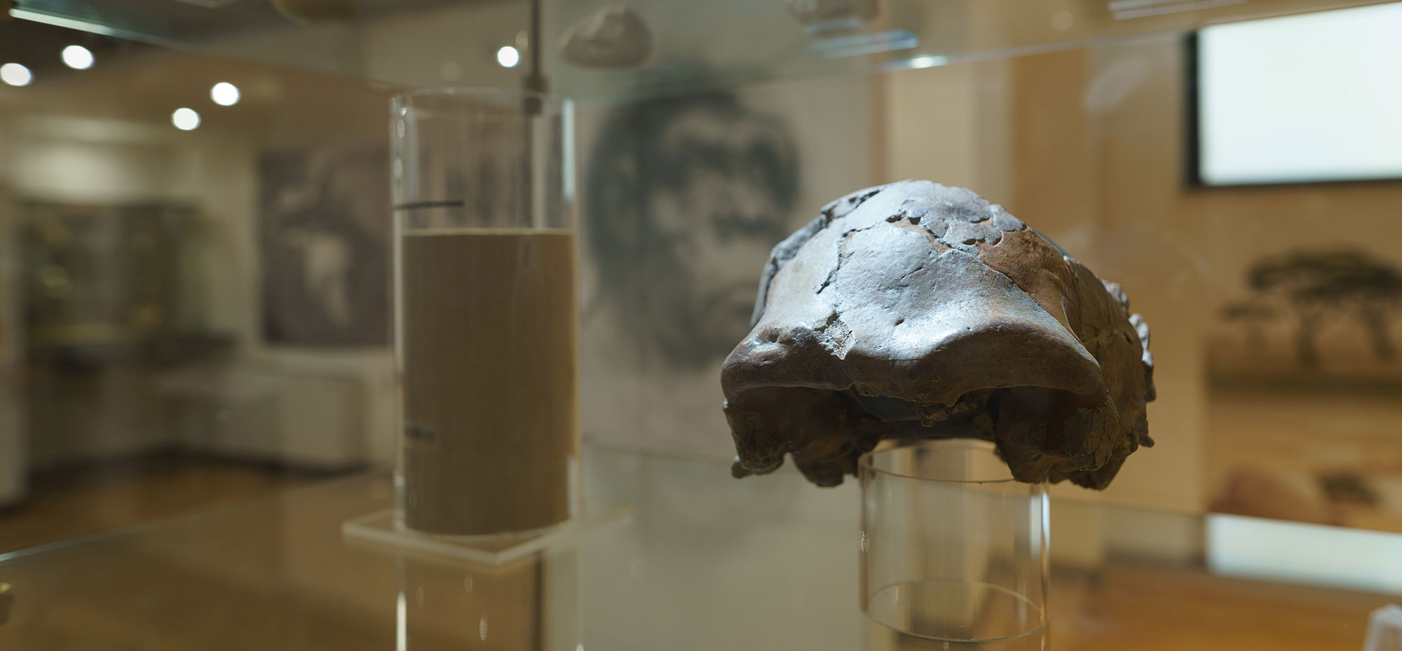 – la seconda sezione rappresenta una sintetica illustrazione dei problemi dell’origine dell’uomo in Africa, del popolamento in Asia e nel Medio Oriente, quindi l’arrivo dell’uomo in Europa. Questa sezione è illustrata con l’esposizione di calchi di ominidi fossili dagli Australopiteci (Lucy, A. africanus, A. robustus ) all’Homo erectus, attraverso fossili asiatici ed europei;